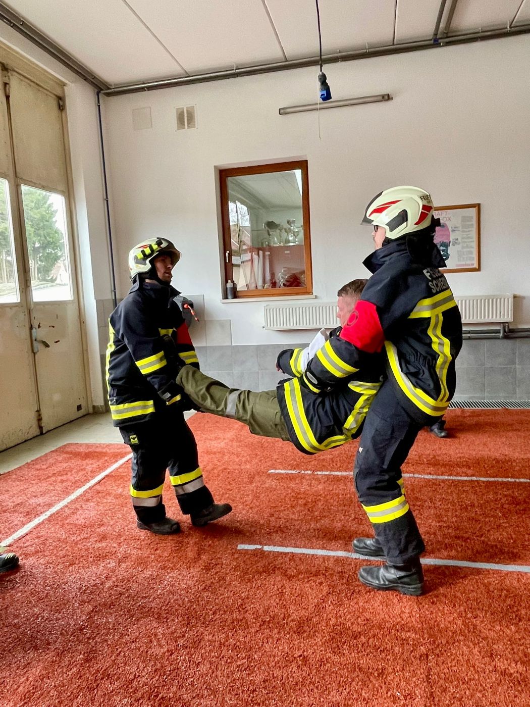 Begonnen wurde mit dem Durchgang in Bronze. Zuerst erfolgte die Abfrage der Gerätekunde am eigenen LFA-B. Danach musste man sein Wissen in der Knotenkunde und Erste Hilfe zeigen, ehe man mit dem eigentlichen Löschangriff beginnen durfte. Dabei ging es nicht um Geschwindigkeit, sondern um die präzise und sichere Ausführung des Löschangriffs durch eine Tür mit Hindernis.