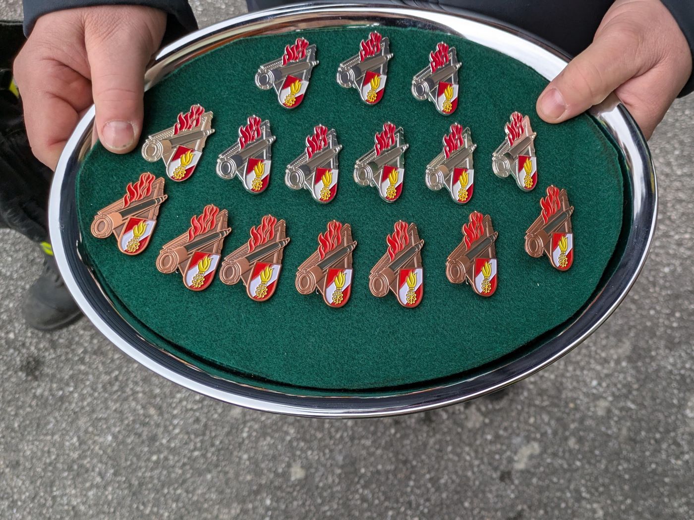 Nach zwei Stunden intensiver Prüfung stand dann fest, dass alle 16 Mitglieder erfolgreich bestanden haben. Sieben davon dürfen nun das bronzene Abzeichen der Ausbildungsprüfung Löscheinsatz tragen und neun dürfen das silberne Abzeichen tragen.