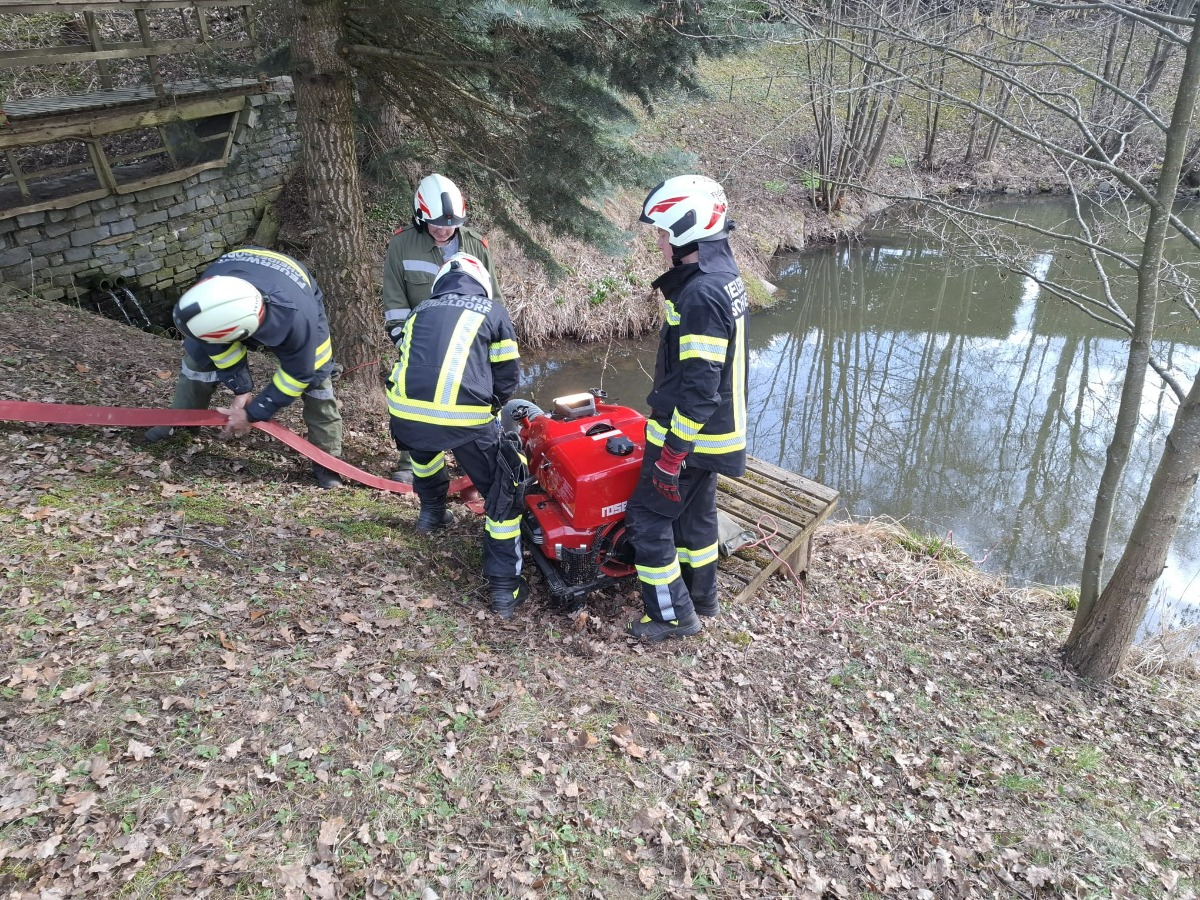 Unsere Wehr nahm mit 11 Mitgliedern an dieser Übung teil und musste von einem nahe gelegenen Fischteich, unter der Bundesstraße 5 durch, eine Wasserversorgung für die Drehleiter der FF Waidhofen herstellen. Weiters wurde ein Atemschutztrupp als Reservetrupp zur Verfügung gestellt.
